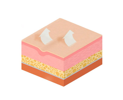 皮膚の真皮層と脂肪の下層に 位置したSMAS層まで引き上げ 固定することで確実な効果を 得られます。